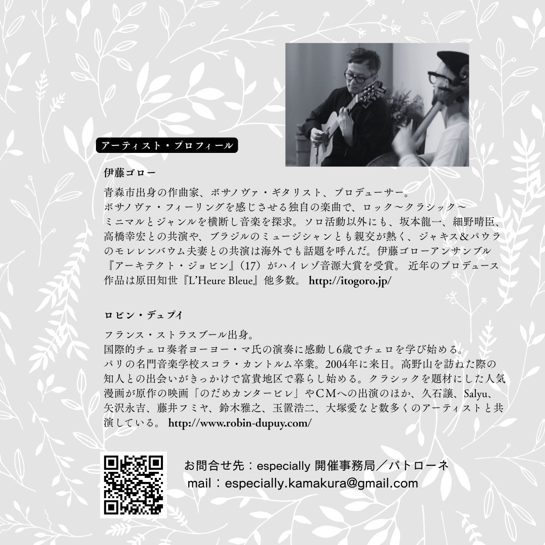 伊藤ゴロー(ギター)、ロビン・デュプイ(チェロ)